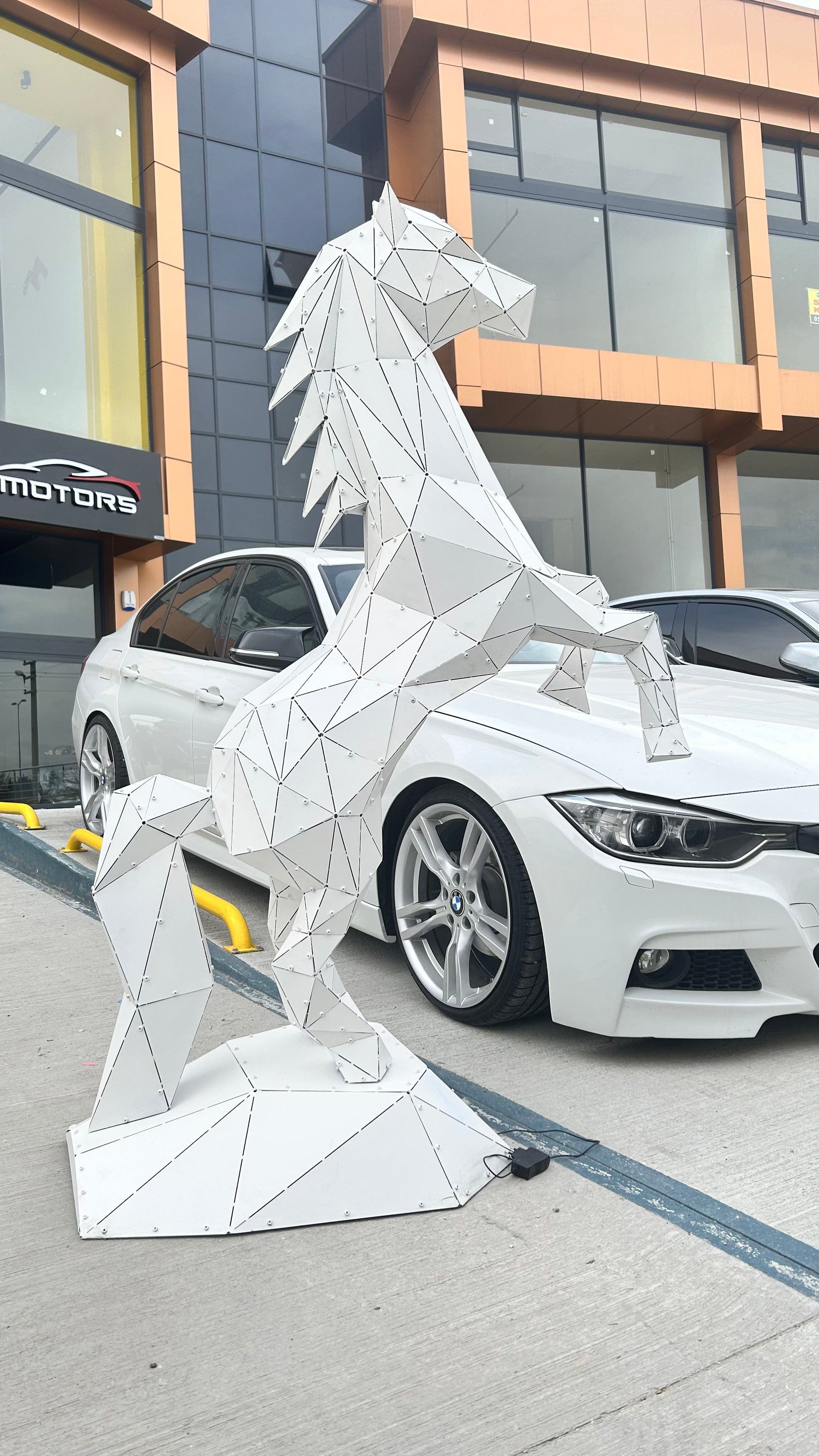 Capture the energy and strength of a rearing horse with this stunning Geometric Sculpture. Its bold posture and clean lines turn any environment into a sophisticated, gallery-like space — ideal for villa entrances, gardens, or upscale venues.