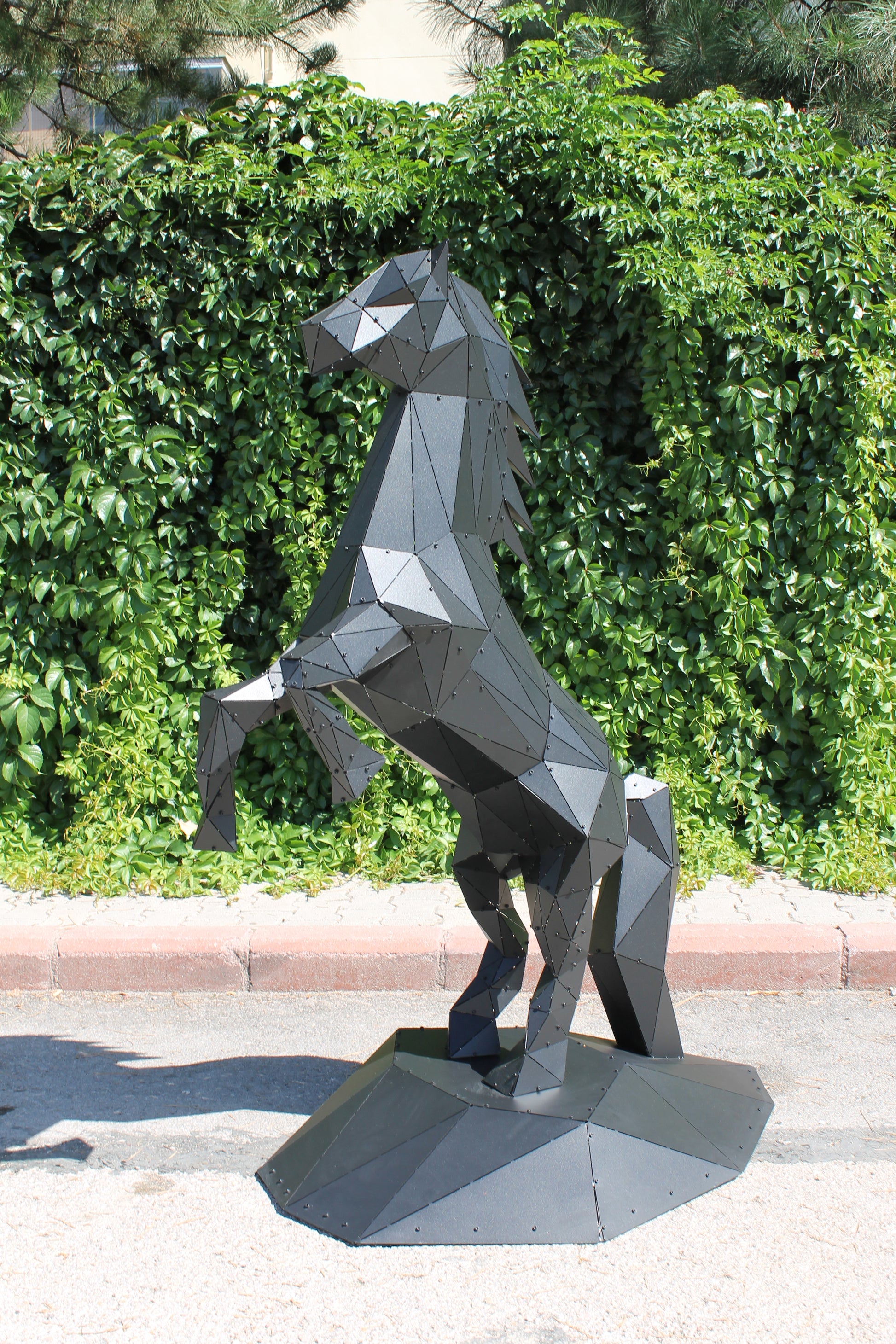 Each piece is laser-cut and hand-welded with meticulous attention to detail. The geometric design highlights the horse’s powerful form, making it a true conversation piece for modern spaces.
